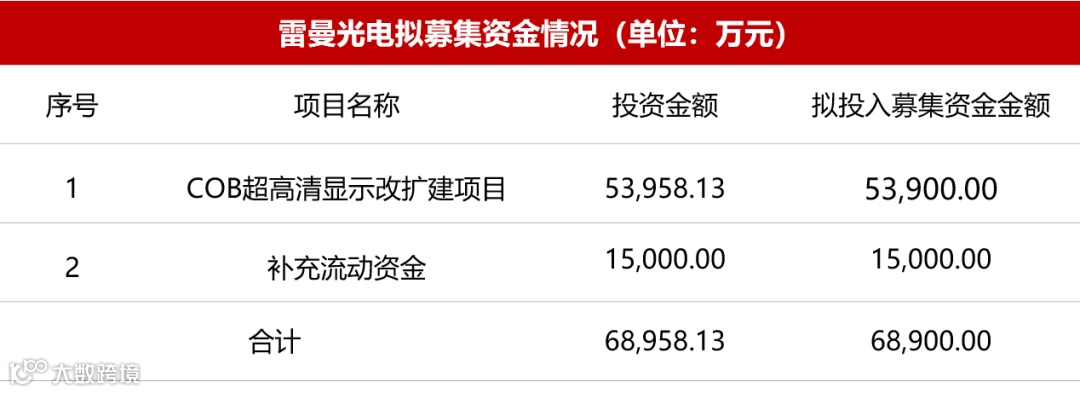 雷曼光电:1月2日发布公告称,公司拟向特定对象发行A股股票数量不超过104,853,009股,募资总额不超过6.89亿元;扩建项目位于广东省惠州市东江科技园雷曼光电工业园内,新建44,584㎡园区;本次募投项目产能均用于生产基于COB技术的小间距或Micro LED显示面板项目,设计产能为72,000㎡(产能按照1.5mm间距产品折算)。