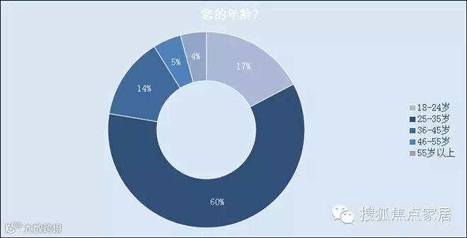 日前,搜狐焦点家居发起【你的家智能了吗?】大调查,征集网友心目中的智能家居,一同探寻智能家居产品的消费新路。此次调查历时一个月,共收到有效问卷21000余份。受访者年龄大多集中在18-35岁的互联网主流人群,其中18-24岁的消费者占17%,26-35岁则占60%。可以看出目前智能家居消费群体正趋于低龄化,年轻人更关注智能家居。