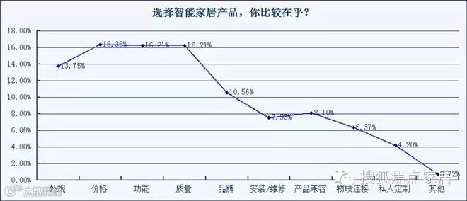在智能产品的使用过程中,消费者最大的顾虑是功能多却华而不实,占到19.71%,和操作复杂,容易坏,占到16.02%。也从侧面反映出目前的智能家居产品不够”傻瓜化“。因为家居是一个复杂的场景,自动化和远程操作,甚至只有一定程度的互联互通并不能解决用户的真实需求,用户不会接受功能很多但与实际应用场景格格不入的产品。