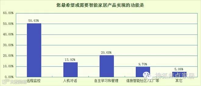 本次问卷涉及:智能家居选择意向、智能产品使用频率、智能家居最需要实现的功能、智能家居的消费支出等方面。结果显示:消费者希望通过智能家居产品提升生活质量,但落实到产品使用上仍属于初级阶段,智能家居产品的使用频率较低。消费者对远程遥控的需求最鲜明。