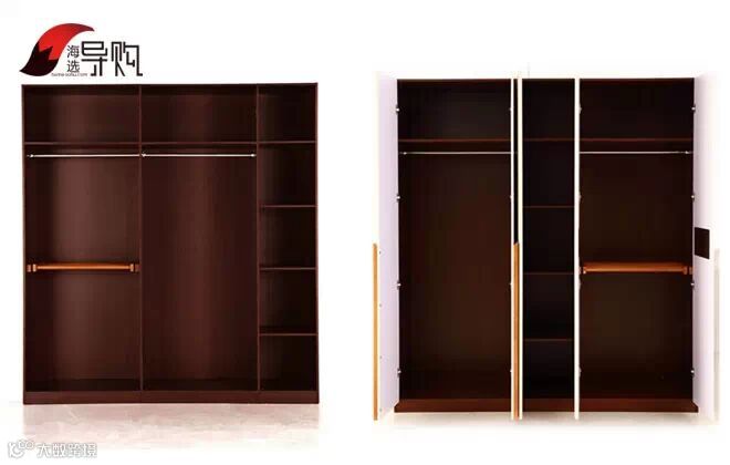 这款五门衣柜,容量非常大,内部可以按照个人的喜好和需要,随意安装组合。内部分区也比较明显,2个超大的可以挂衣服的区域,让你再多外套都不怕,下方还有裤架。不过缺陷是如果存放内衣需要另外购买内衣盒,无法直接存放。