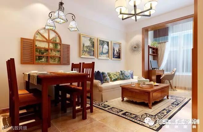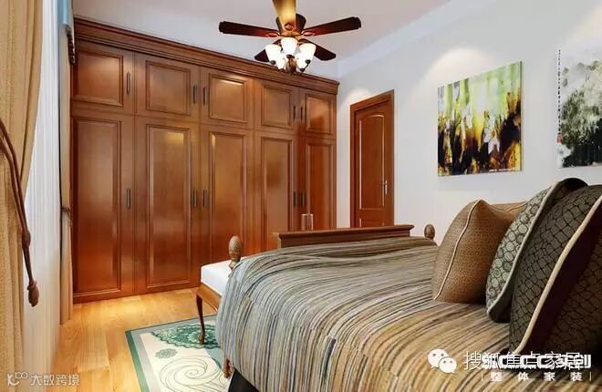 美式田园风格中,非常注重历史感,在本套案例中,木质的餐桌与木质的茶几,烘托出历史的痕迹。本套案例卧室比较温馨,没有太多浮夸的装饰,只是简单的布艺、衣柜和装饰画。就显得各位静谧、温暖。