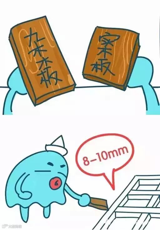 间隙:龙骨与地面的间隙要使用实木片塞垫,不能用杂木块,龙骨与墙体交界处应留有8-10mm的伸缩间隙。