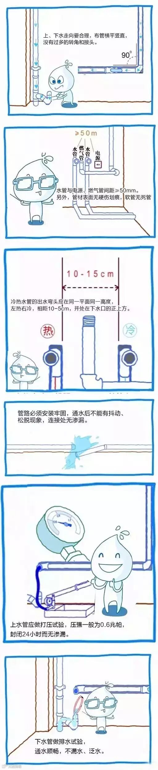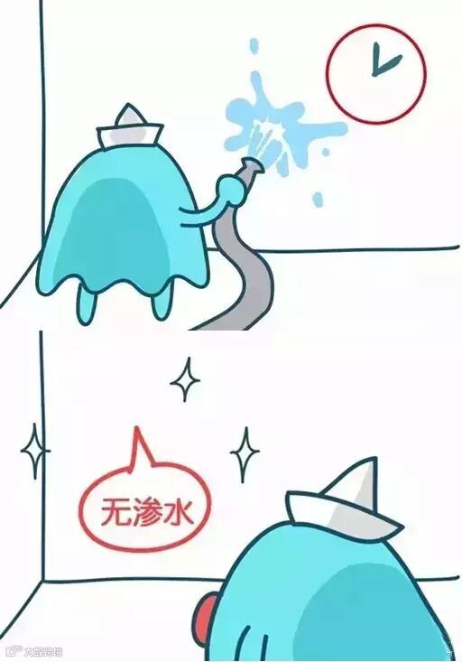 地面:在门口做15cm高的挡水,放10cm深的水。24小时后,水面高度不应有变化,楼下相同位置的天花板也没有渗水的情况。