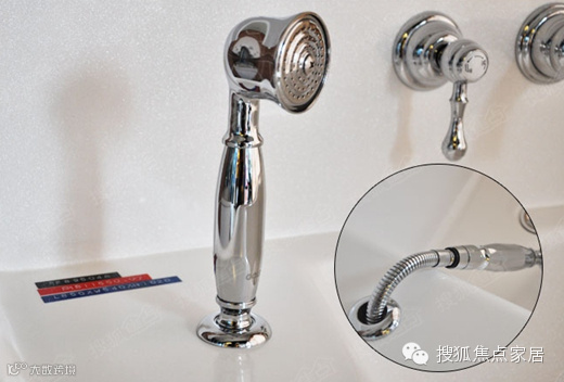 左边把手的为龙头选择,向左旋转为墙出水龙头,向右旋转为手持花洒。右边的把手为冷热选择,向上旋转为冷水,向下旋转则为热水。