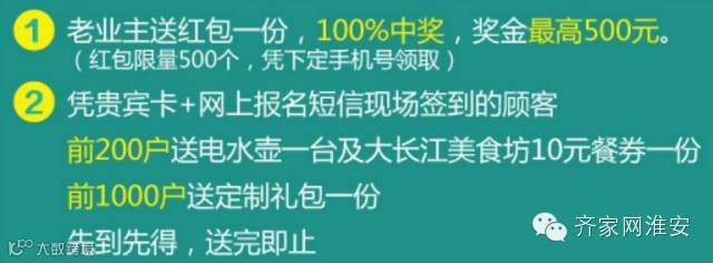 1、老业主送红包一份,100%中奖,奖金最高500元。