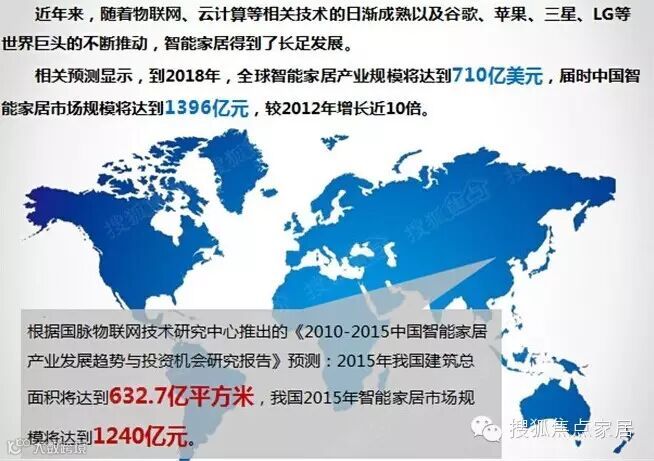 【搜狐焦点家居华北大区主编 刘丽娜】:比尔·盖茨的一句话,在不远的未来没有智能家居系统的住宅会像今天不能上网的住宅一样不符合潮流。智能家居一直以来都是热门话题,随着物联网、云端计算技术的发展,2015年智能家居市场规模将达到1240亿元。