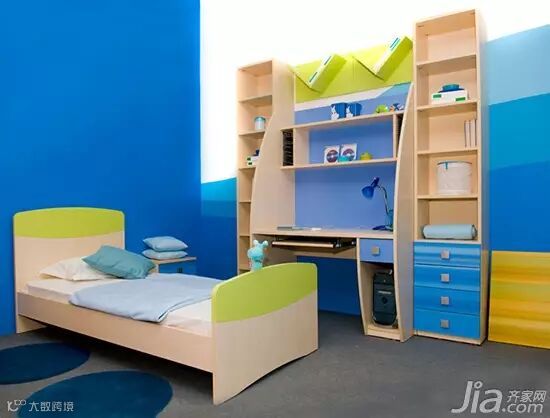 在没有太大把握的情况下,儿童房尽量少用具有补色关系的色彩。可以多用对比色如红和黄、黄和蓝等,这类颜色既有对比,能够满足孩子的视觉发育要求,也会减少色彩对孩子的身体造成的压力。