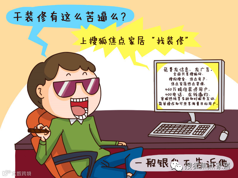 全面打通搜狐网、搜狗搜索、焦点房产、焦点家居热点资源,460万精准装修用户,400电话、在线邀约、客服热线等多种即时服务互动,简单操作即可坐享海量目标用户。