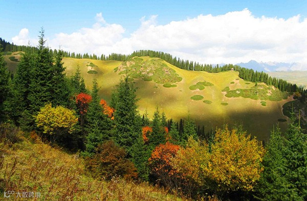 巩乃斯河汹涌西流,远山含黛,奇峰突兀,花草弥谷。雪山倒映在湖泊中,漫山遍野都是松树和野花,林场有瀑布飞溅,泉水萦回,景色迷人。
