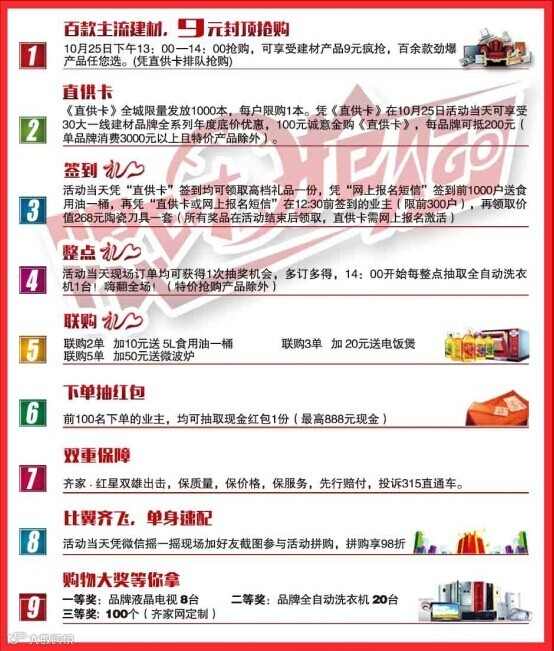 前1000名签到就免费送食用油一桶!绝对白捡啊!再凭直供卡或网上报名短信还有价值268的陶瓷餐具一套限前300名哦!oh~赶紧带上媳妇去抢啦!