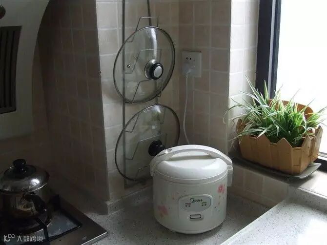 还有一个亮点是锅盖架,不知道您家厨房有没有这个设计元素呢,锅盖神马的真真的是放哪都不太方便啊,这样一个架子好拿好放还剩空间。