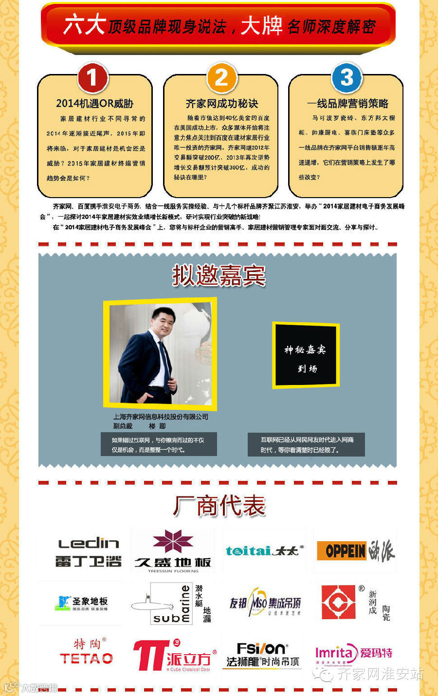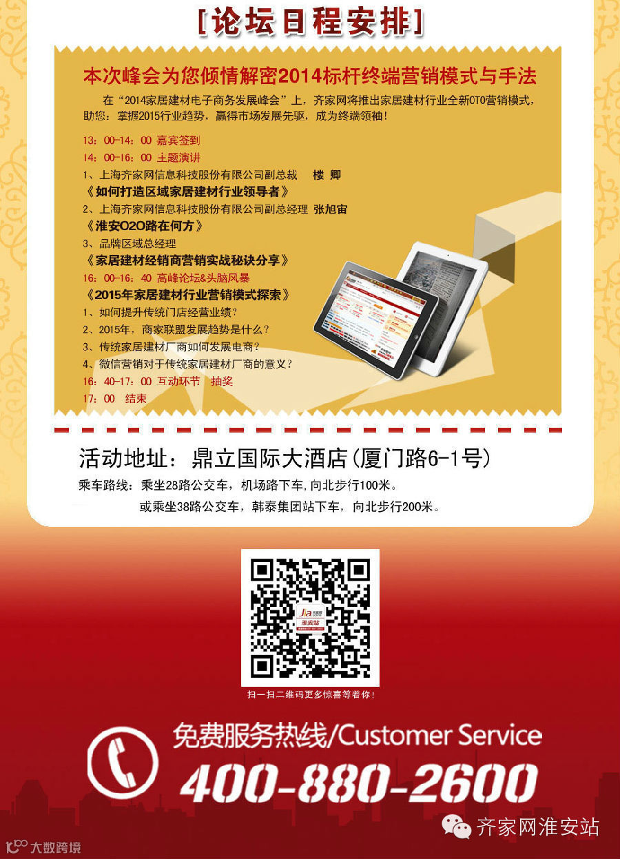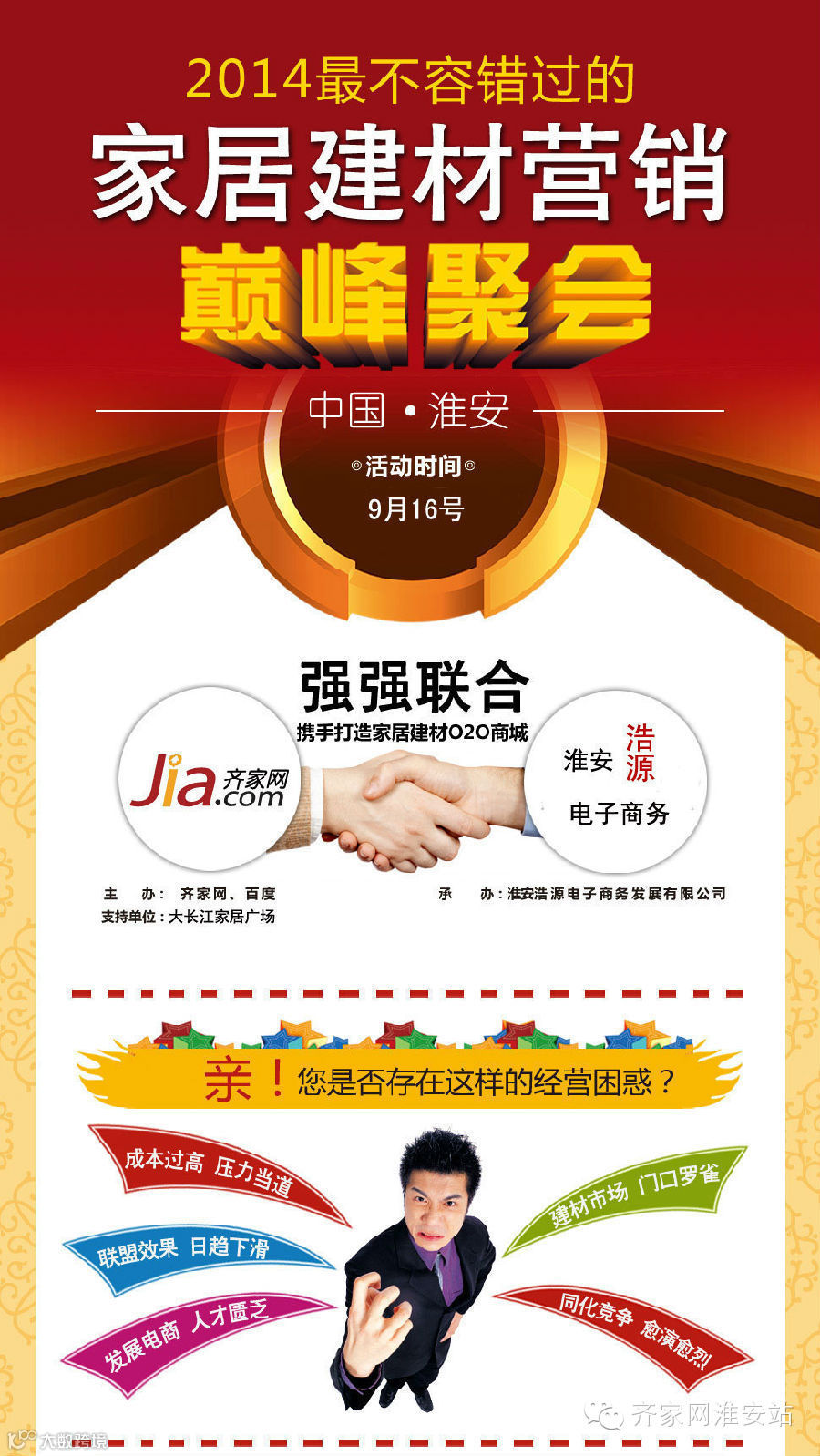 9月16日,齐家网招商峰会即将于淮安鼎立国际大酒店举行,诚邀各方有志之士加盟,携手共赢!报名,就要快人一步!