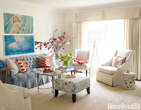 有的时候 沙发上 一对 抱枕 显得 有点单薄, 可以尝试放两对, 使用对比比较强烈的 花纹 颜色 或者 肌理