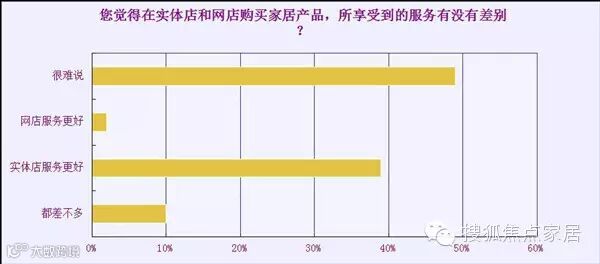 同时家居电商仍然有潜力可挖,半数消费者没有对两者的服务差异做出表态,而有10%的消费者认为线上线下的服务没有差别。怎样打消消费者线上购买的顾虑,值得企业思考和努力。