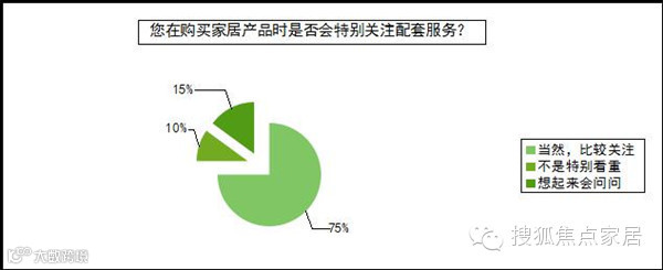 在被问及“购买家居产品是否会关注配套服务”时,消费者的态度显而易见,以75%的高比例取得压倒性优势。