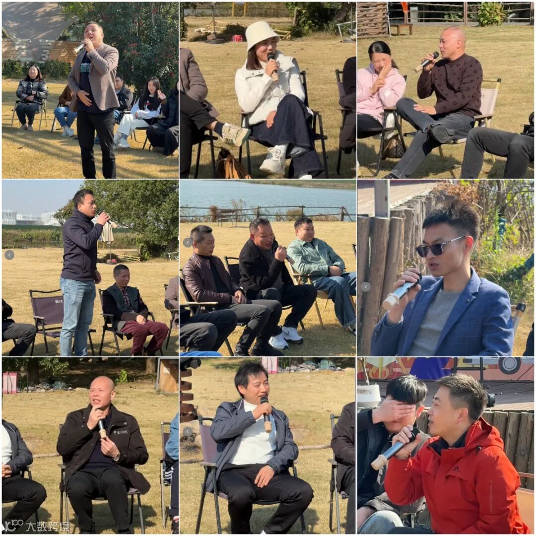 行至开阔草坪,一场特别的「露天座谈会」拉开帷幕。董事长宋爱武、创始人黄亚红与团队们围坐成圈,促膝长谈!