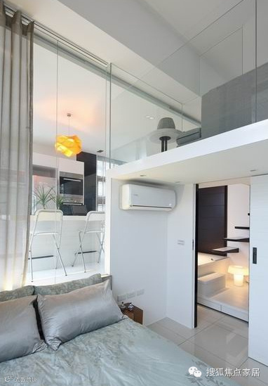 本套案例大量运用玻璃、灰镜作为空间的介质,视觉延伸创造空间深度、通透感,就一位单身居住者而言,反而得到安全感。