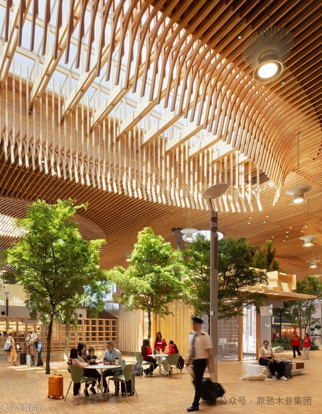 该屋顶的设计灵感来源于太平洋西北地区的自然美景,大规模木材结构与机场内的绿洲相互呼应,当旅客置身其中,仿佛在森林中漫步,能够体验到自然带来的愉悦与惬意,充分体现了建筑师对当地自然景观的尊重与融合。