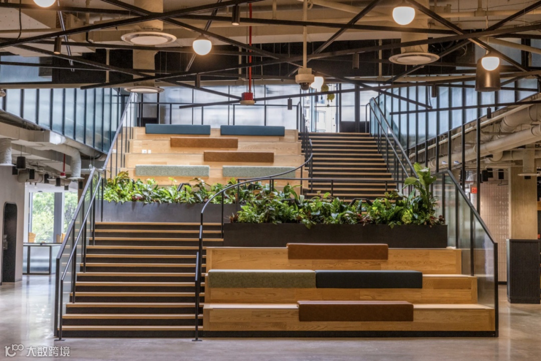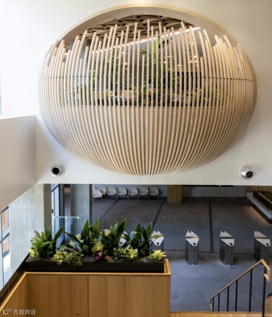这不是一个传统的企业园区,而是一个混合用途、绿色可持续的亲生物设计的社区。园区使用大量木材打造,减少碳排放。