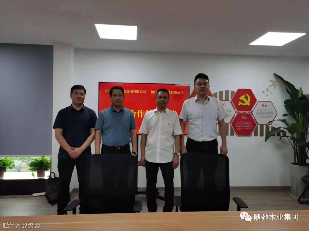 7月10日,山东鼎驰木业集团有限公司与镇江中林林业有限公司在镇签署战略合作协议。美国嘉宝投资有限公司董事长司君峰,鼎驰集团副总经理、财务总监姜春旭出席签约仪式;中国林产品集团有限公司党委委员、副总经理、镇江中林董事长柳凤柱出席签约仪式并讲话。鼎驰集团总经理柯海涛、镇江中林总经理赵磊代表双方签署协议。