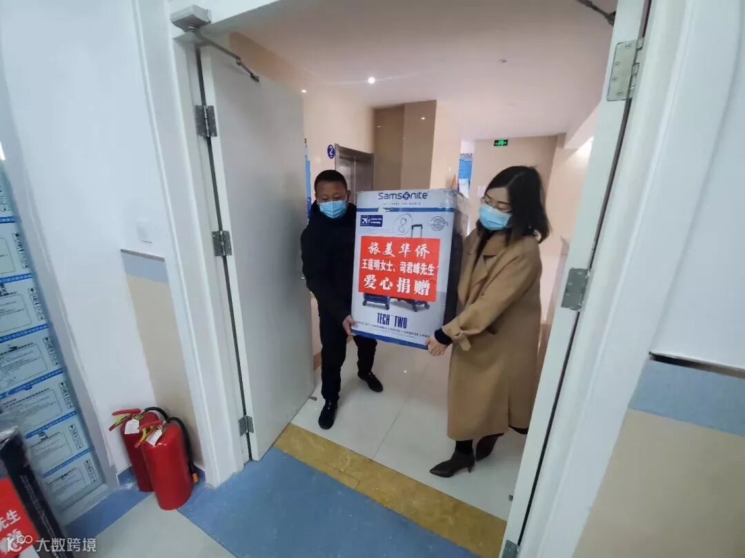 2020年2月10日山东鼎驰木业有限公司股东、美国嘉宝投资有限公司董事长司君峰先生委托张伟先生来到蓬莱市应急物资小组驻地,为防疫一线捐赠价值10万元的2200支N95口罩和350套防护服。