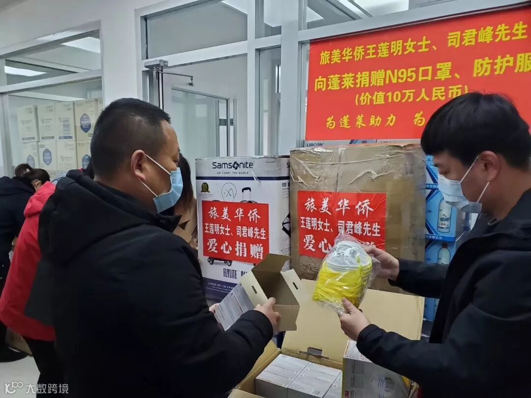 司君峰先生与王莲明女士虽现在身在美国,但一直关注着国内疫情的发展,两人得知家乡医疗物资短缺,奔波十几天,辗转美国各大商场医疗机构筹集到这些物资无偿捐赠给蓬莱,用于支援防疫一线。