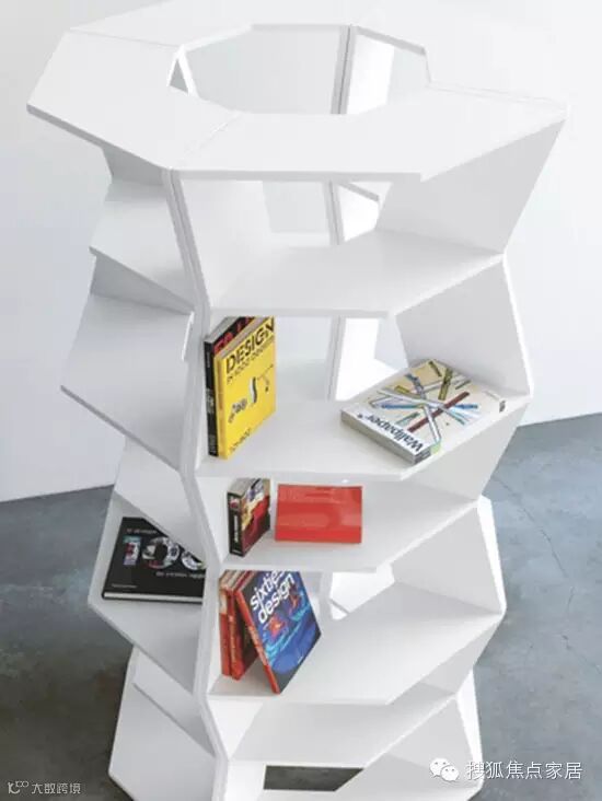 这个由大小不等的环形叠加而成的书架,用最小的体积构筑起了书籍最大的展示面,不仅方便查阅和拿取,更在视觉意象上形成有趣的视觉嵌套。摆放在家里,不仅是书架,还是件艺术装饰品。