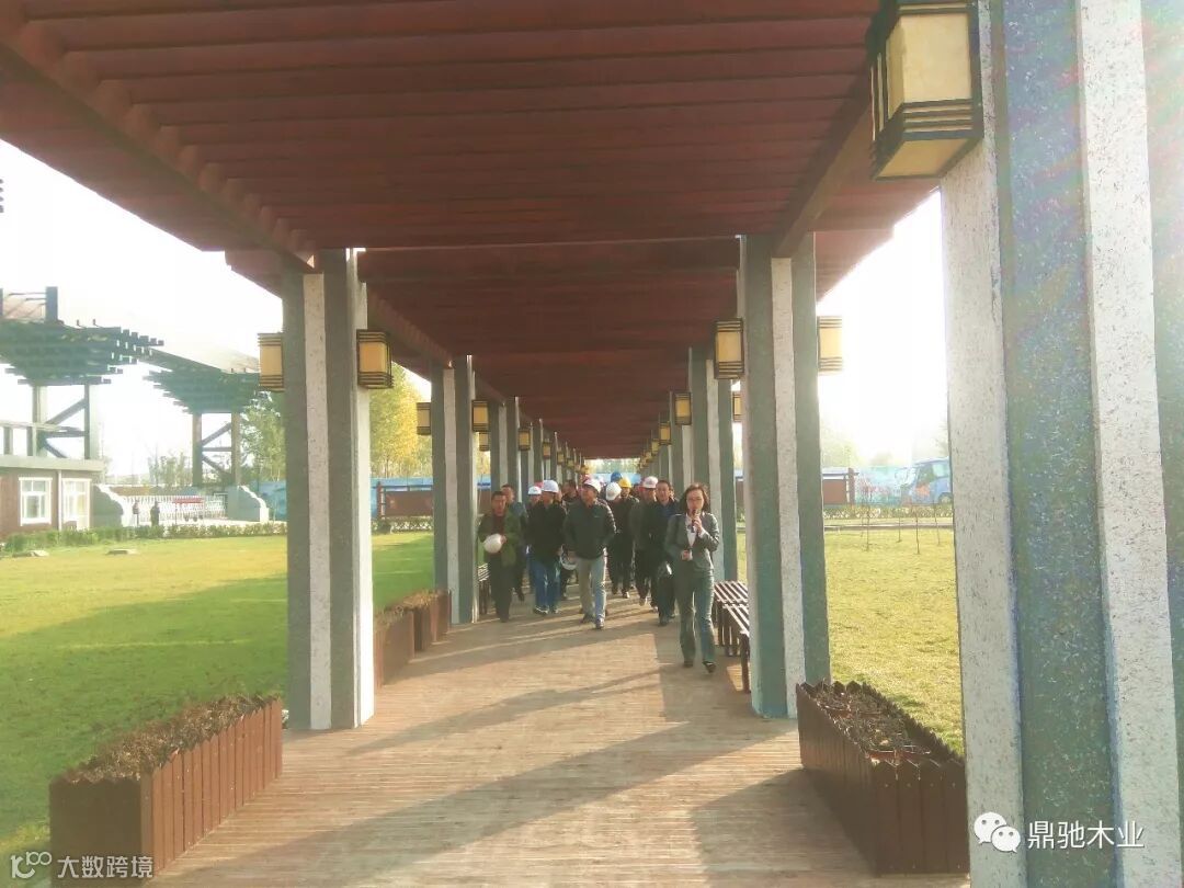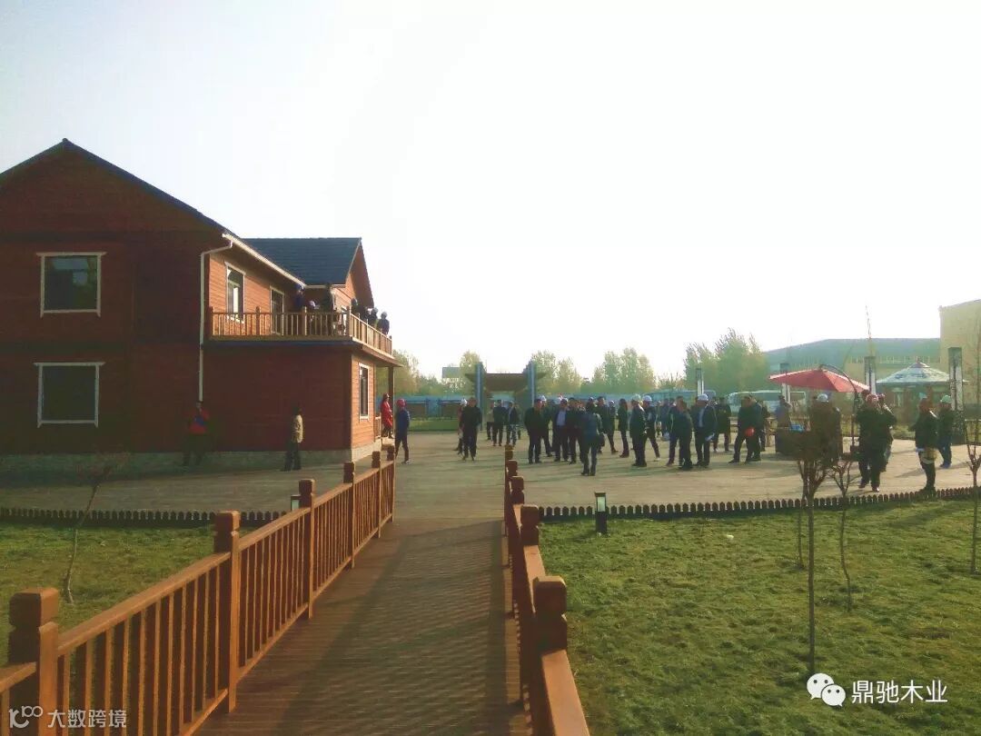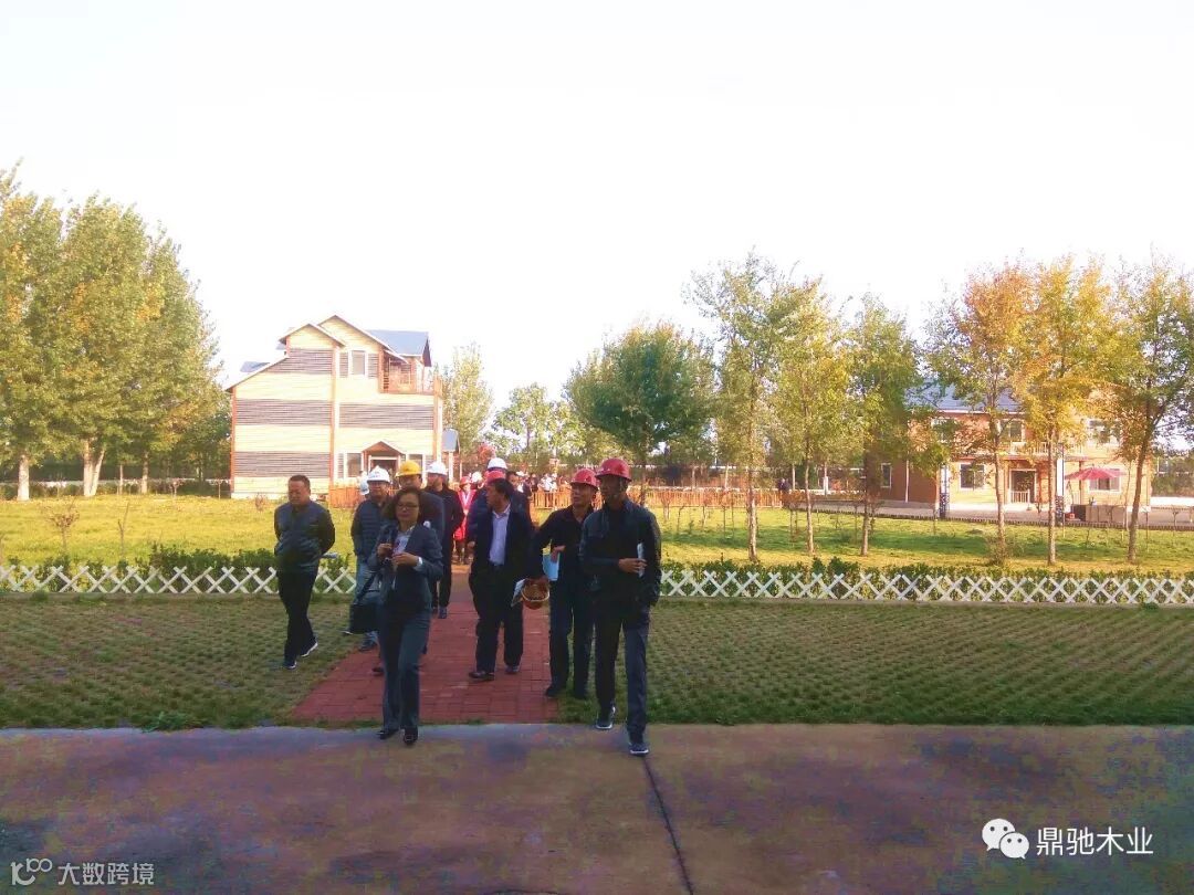 观摩团首先参观了鼎驰木业独立设计建造的二层梁柱式重型装配式木结构别墅、三层住宅式轻型装配式木结构房屋,以及亭台、廊架、栈道等装配式木结构户外小品景观。