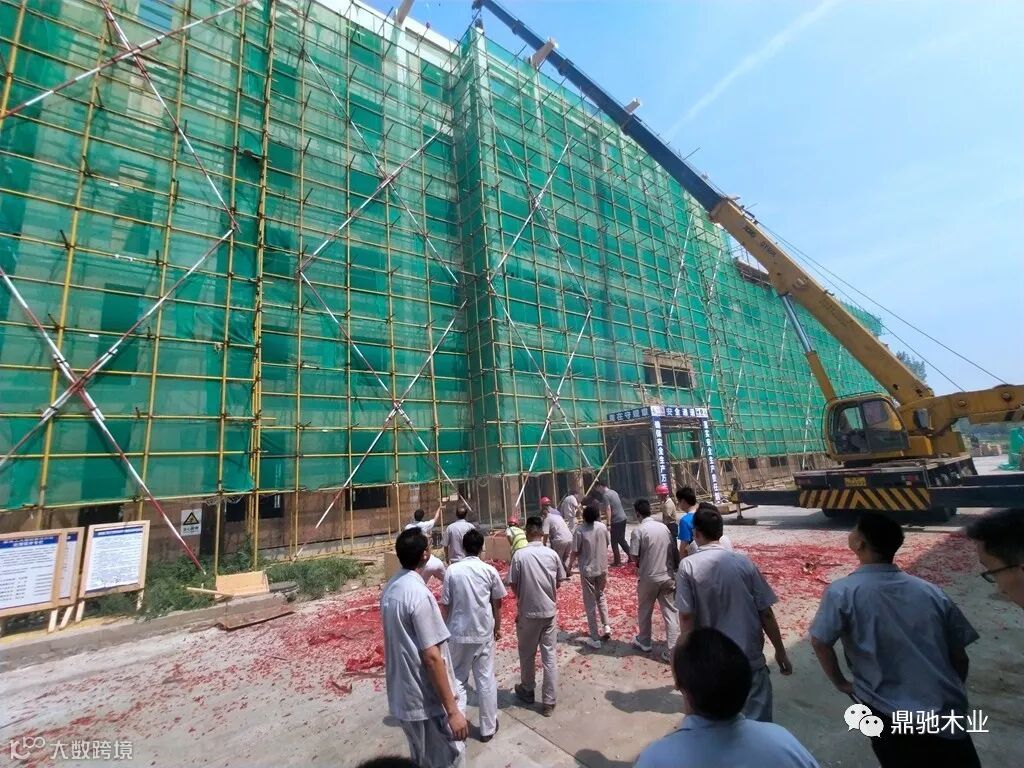 随着山东鼎驰木业有限公司执行董事马艳宣布开始上梁,现场礼炮轰鸣、彩带飞扬。