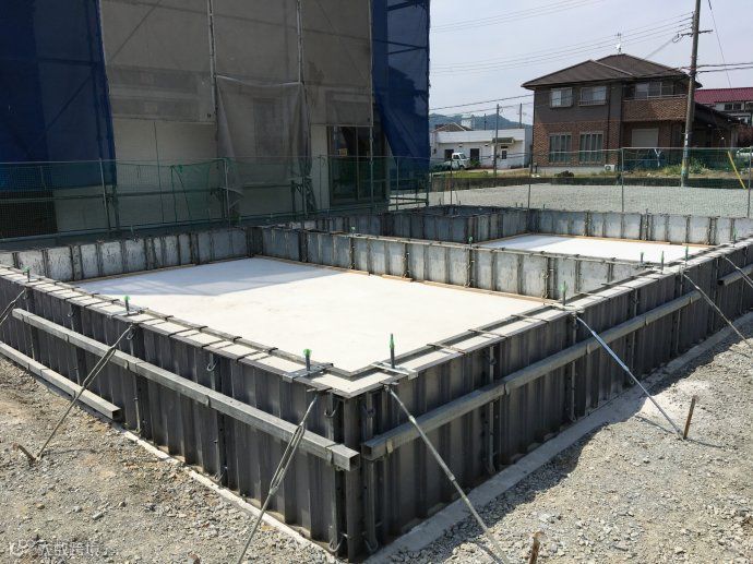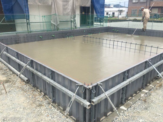 用混凝土搅拌机和泵车,进行地基土壤上部的混凝土浇注施工