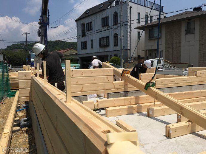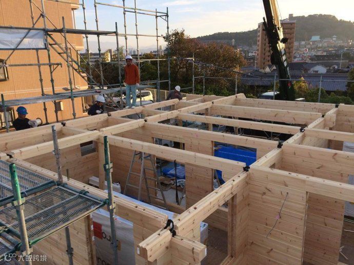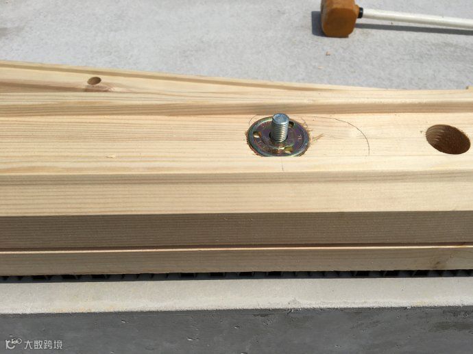 使用预埋在混凝土基础墙中的镀锌螺栓,将墙体最下部的木材构件固定到基础墙上