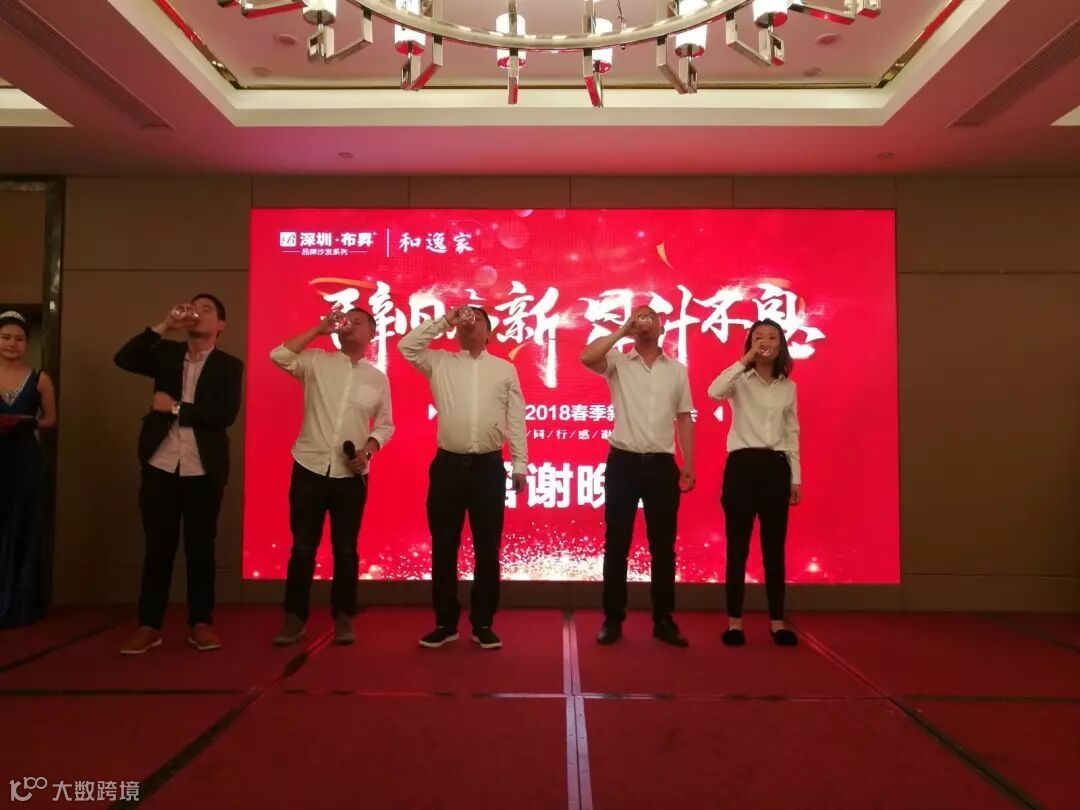 由于2017年年终没有召开年会,所以布昇家具借此新品发布会的机会,设宴邀请各位经销商家人前来。晚宴上,布昇董事长宋爱武先生,为大家讲述了2018年布昇的首要核心任务以及新一年的整体规划与方向。