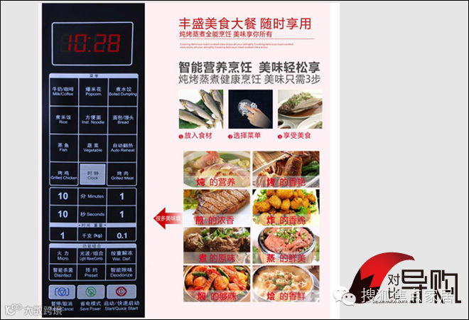 两款微波炉都属于微电脑控制式的,除了基本的光波加热功能以外,还支持烧烤、蒸汽、预约等功能,可以进行蒸煮烤炖各式菜肴的制作,而且是一键式操作,方便快捷。此外,还具有童锁功能,充分保护儿童的安全。