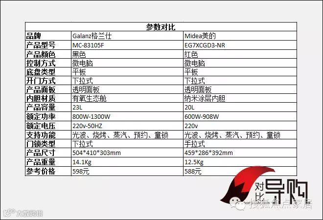 两者外观上都比较时尚大气,很适合现代厨房搭配,大红大黑的经典色永远都不会过时。作为一款微电脑控制的微波炉,两者的价格均在600元以内,性价比相当不错,特别是美的这款非常适合新婚人士购置,增添喜庆气氛。
