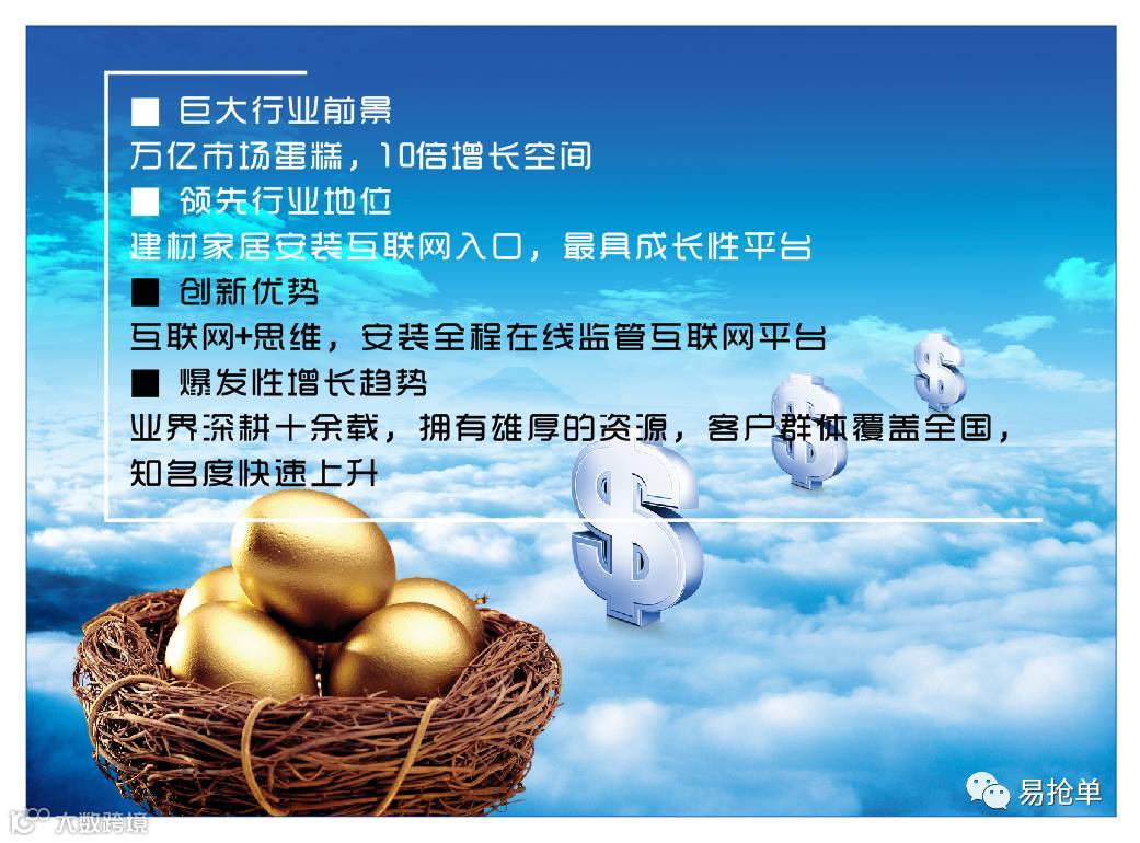 安装大师平台能运用大数据,高效整合线上线下碎片化资源,让闲置产能通过行业集群,异业联盟,共享资源,迅速扩大市场份额,创造新的经济价值;在售前、售中、售后方面一站式地为实体店提供解决方案,共享4万亿大市场!