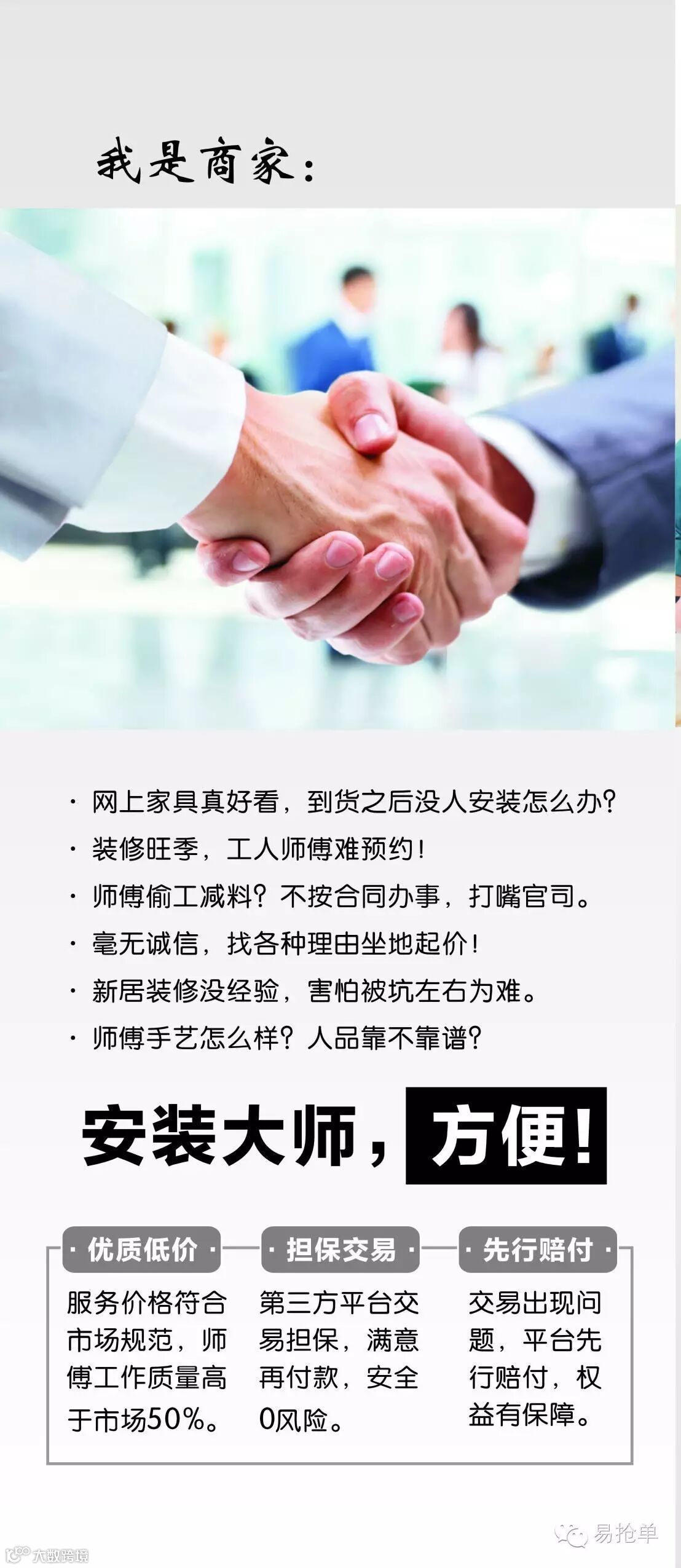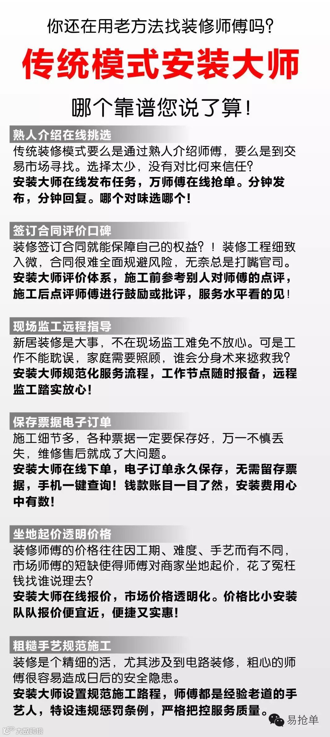 安装大师对淘宝、京东的在线销售模式进行了改造升级,