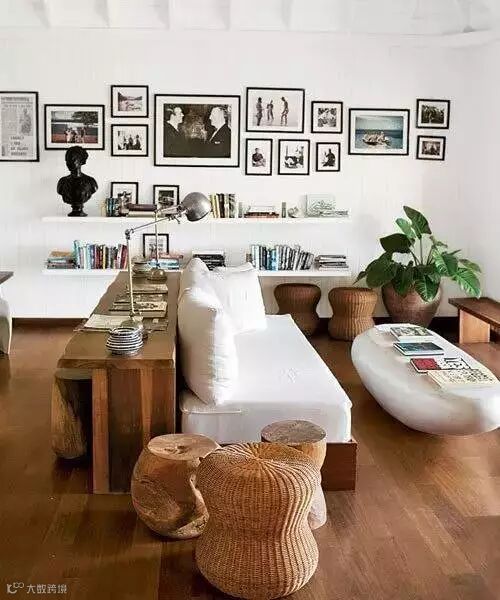 沙发的标配就是一个茶几桌,上面放几个茶杯作为装饰。其实根本不需要买茶几,一只小板凳就够了。