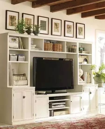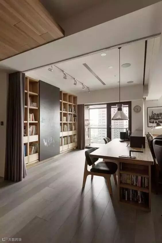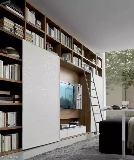 当然也可以学习外国人的创意,把电视机藏起来。放在书房里,用嵌入式面板遮起来。