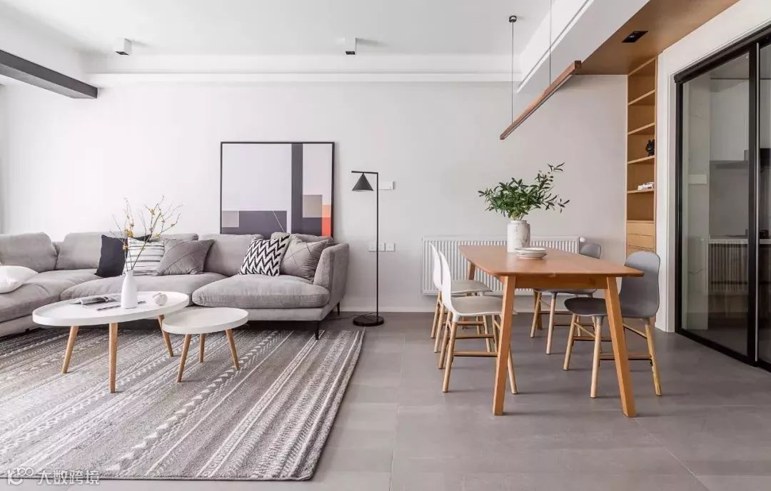 可以多考虑开放式和空间交互式的布局,例如餐客一体化、开放式厨房等,减少区域强行分割,这样不仅能提升空间利用率,也可以让视觉更加开阔。
