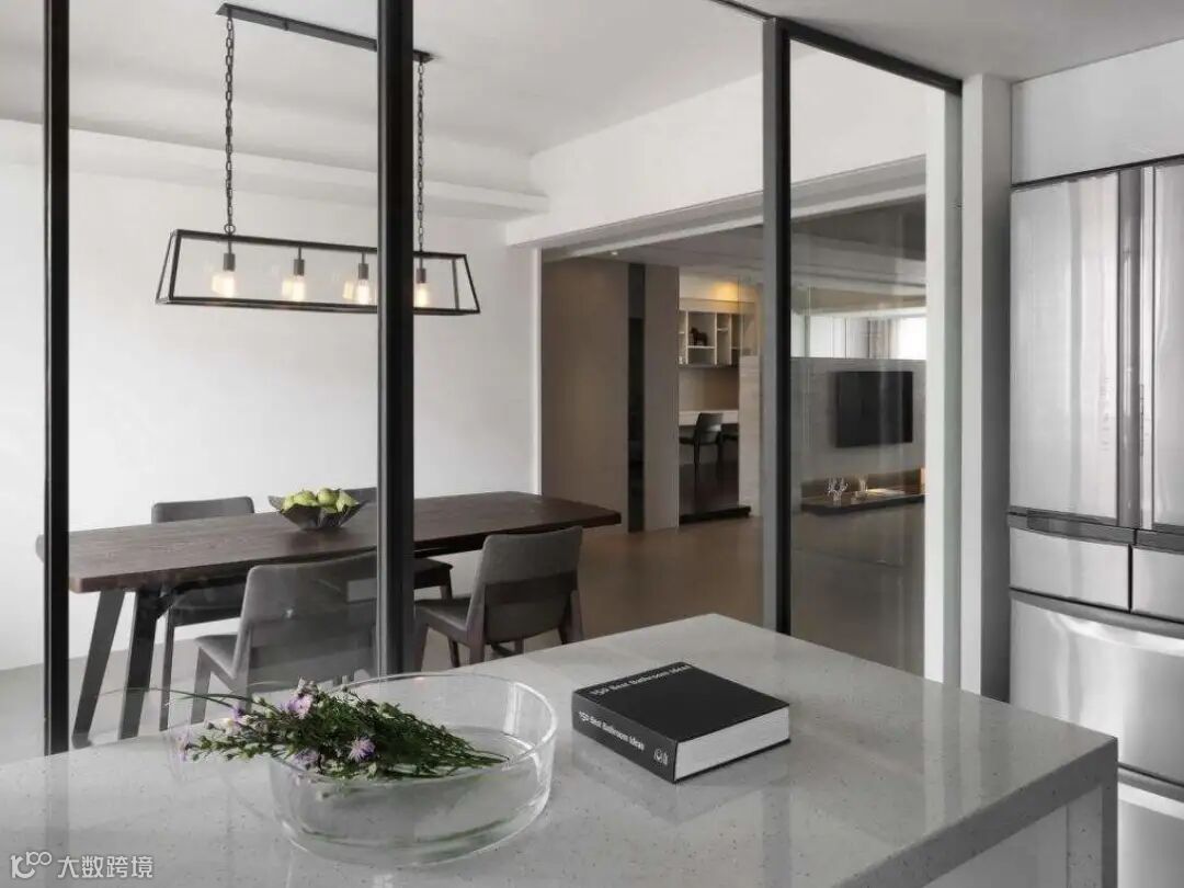 比如厨房,上半部分可以做玻璃隔断设计,这样就能成功引入光线,瞬间让整个空间通透明亮起来。