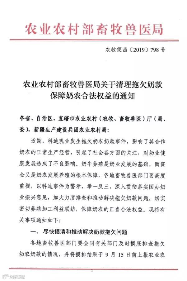 近日,农业农村部畜牧兽医局发布了《农业农村部畜牧兽医局关于清理拖欠奶款保障奶农合法权益的通知》。