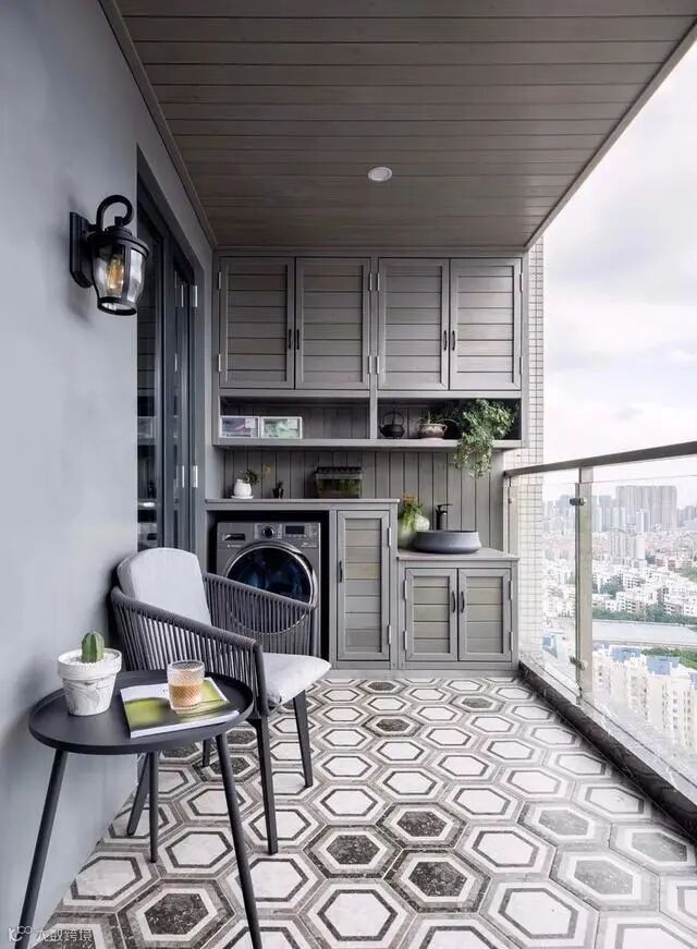 这种阳台需要满足储纳、洗衣、洗漱等需求,对采光和通风的要求较高,比较适合凸阳台和复合式阳台。一起去看看有哪些常见的生活阳台设计吧。