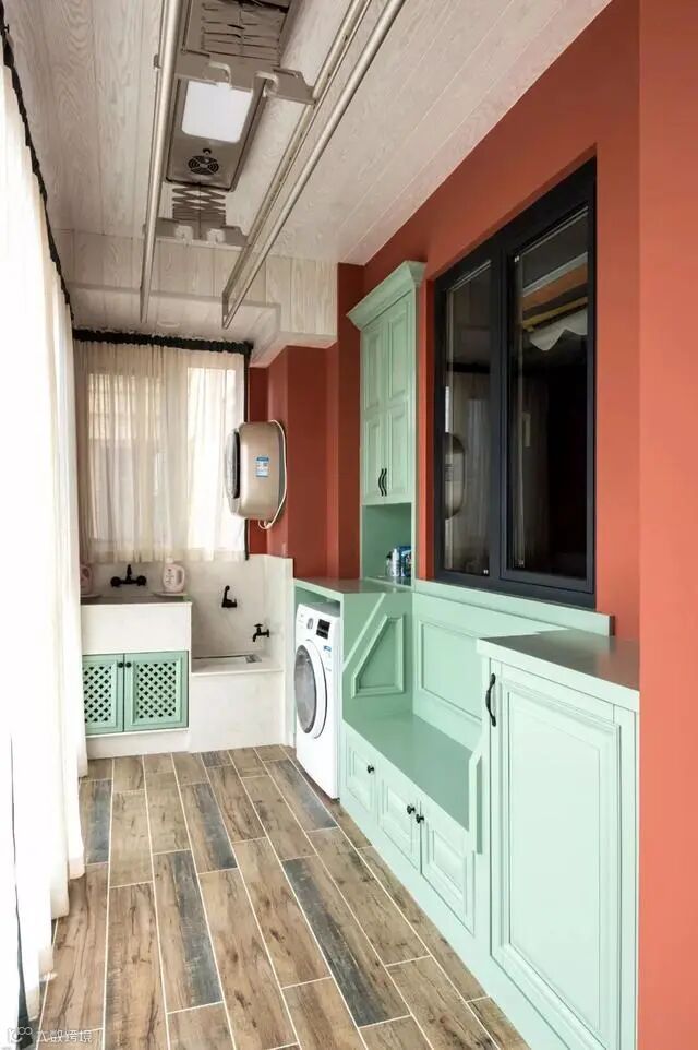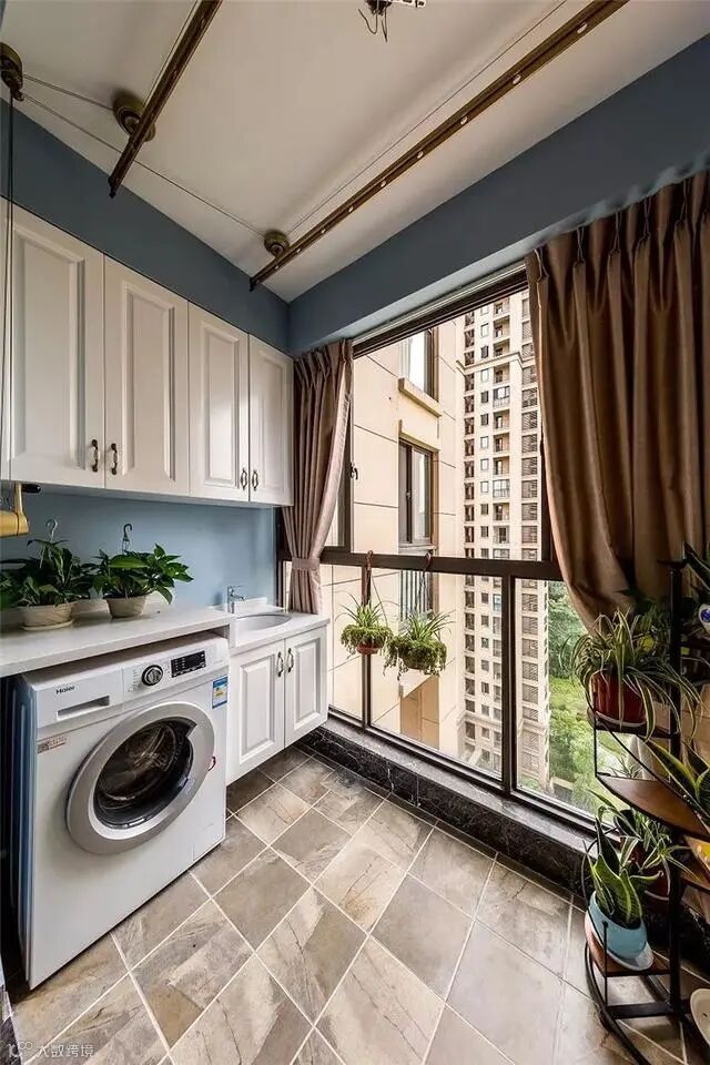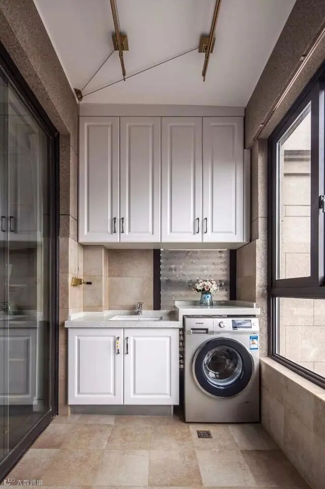 搞装修这么多年,小编常听见的抱怨就是卫生间小、厨房小,各种厨电、洗衣机无处安放。这个时候就可以将阳台好好利用起来。做个柜子,把洗衣机内嵌进去,空间利用满分!