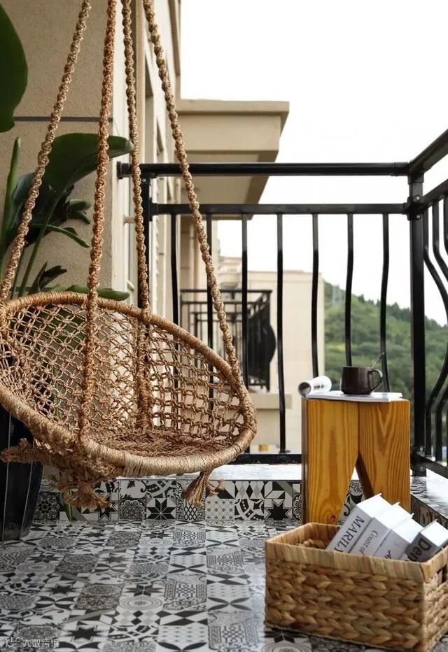 2、阳台放吊椅+茶几