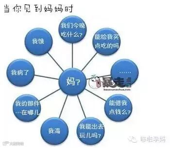 对妈妈:妈,我饿了;妈,我XX在哪;妈,我想XX;妈……