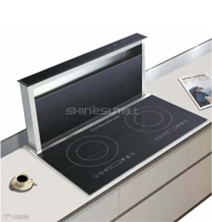用的时候升起来,可以排走做饭时产生的蒸汽以及油烟;不用的时候降下来,与桌面齐平,一点也不占空间,隐形在桌面里,整体简单美观大方。