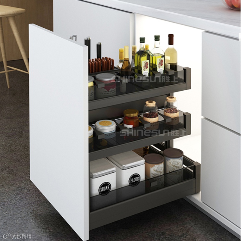 橱柜设计够极简,轻巧收纳任我行,碗筷数量不一,菜品的内容丰富花样繁多,那么所使用的锅碗瓢盆都是不一样的,那么就需要大量的空间来区别存储餐具和厨具,所以碗篮和锅篮的存储空间建议尽量多做一些。厨房真的是一个创造奇迹的地方,越是丰富的厨房所做出来的美食就越多,生活质量也就跟着上去了。