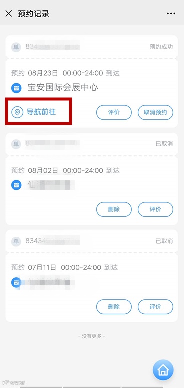 预约成功后会生成电子通行证,通过电子通行证可查看预约记录,点击进入此页面按照导航指引前往预约停车场。