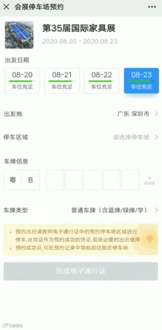 预约时间:8月13日起可预约8月20日-8月23日的停车区域,每次预约停车时长为1天
